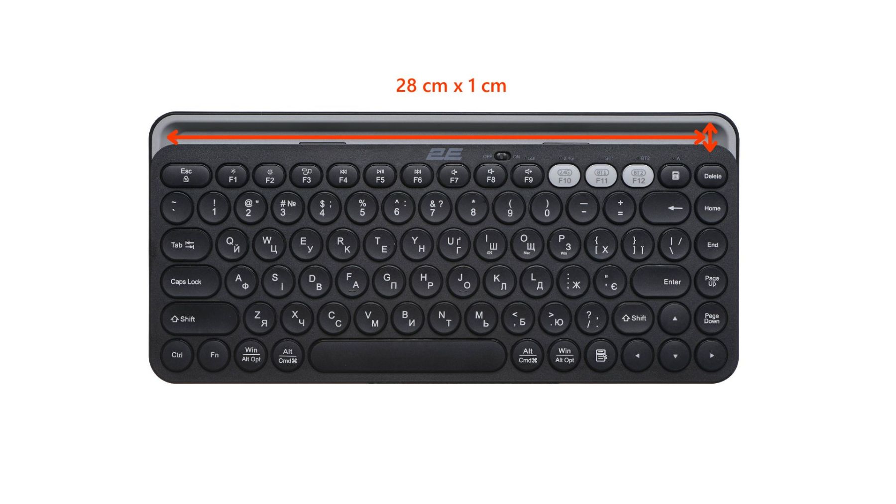 На додачу: клавіатура сумісна з пристроями, що працюють на базі ОС Linux, macOS і Windows 10/7 та попередніх версіях. Для живлення знадобиться дві батарейки типу ААА.
