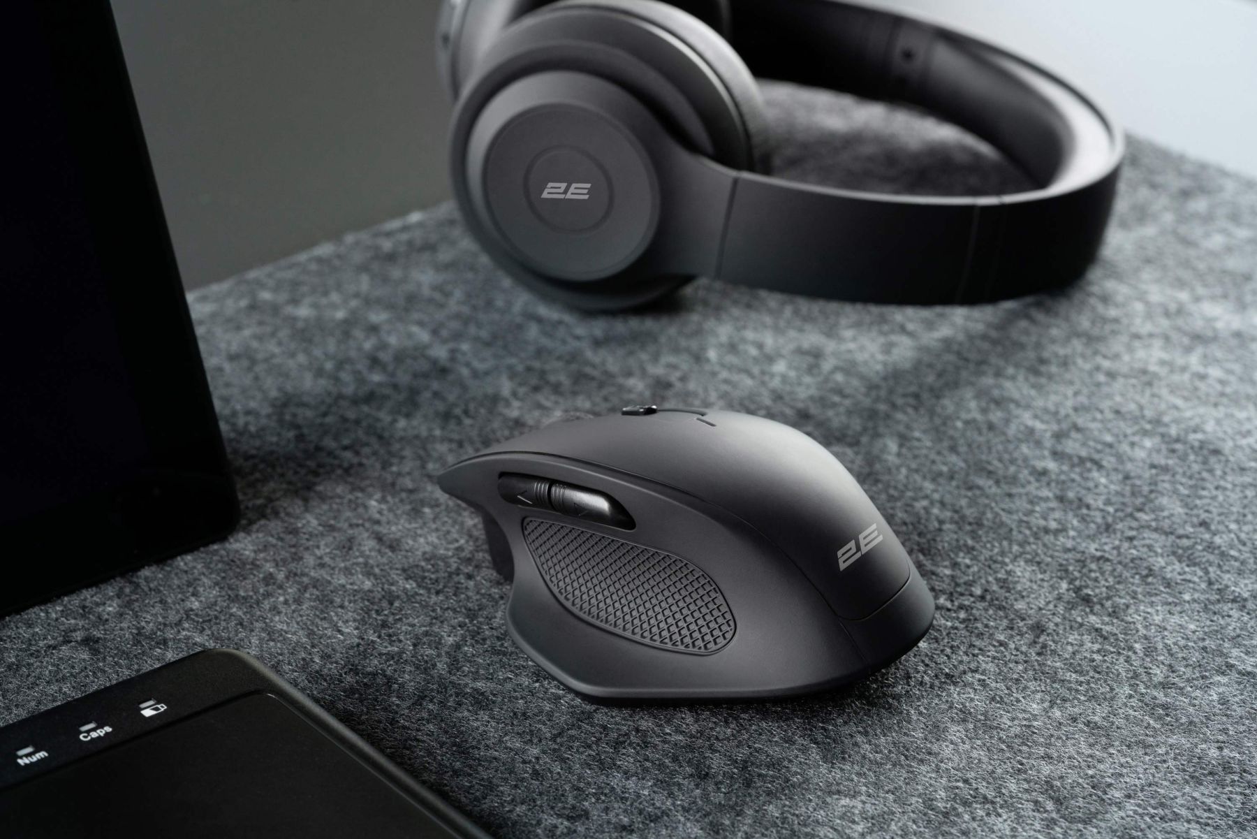 Повнорозмірна велика миша анатомічної форми виконана в чорному стриманому дизайні та повністю вкрита приємним на дотик Soft Touch покриттям, що є запорукою омфортної роботи. Додаткова підставка під великий палечь, з фактурною вставкою, роблять мишку максимально зручною для тривалого використання. Вбудована літій-полімерна батарея забезпечить до 60 днів* роботи, при повній зарядці, а при необхідності зярядки мишкою з легкістю можна користуватися в дротовому режимі, підключивши до ПК для підзарядки.
