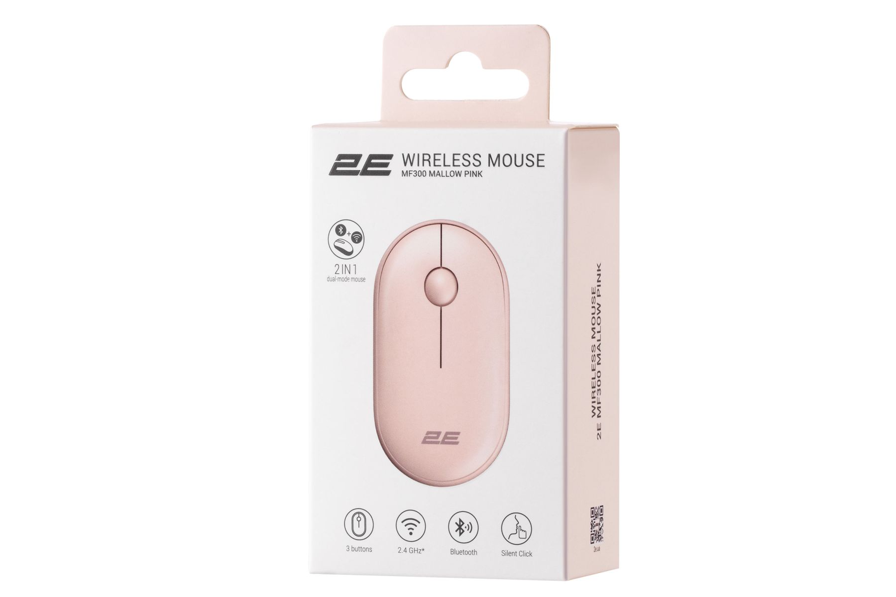 Миша 2E MF300 Silent, WL/BT, рожевий