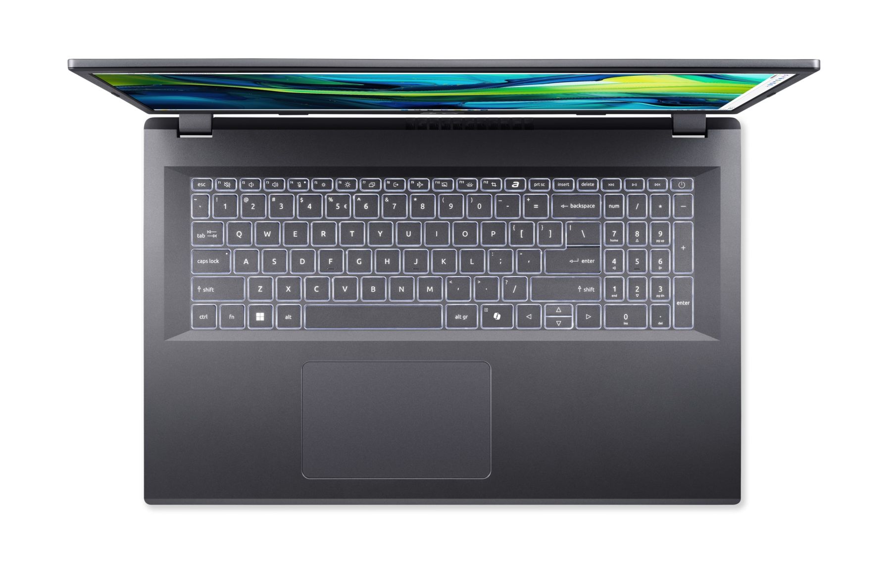 Acer Aspire 17 оснащено 17,3-дюймовим IPS-дисплеєм із роздільною здатністю Full HD (1920x1080), що забезпечує широкі кути огляду та яскраве зображення. Великий екран ідеально підходить для роботи з документами, таблицями, а також перегляду фільмів.