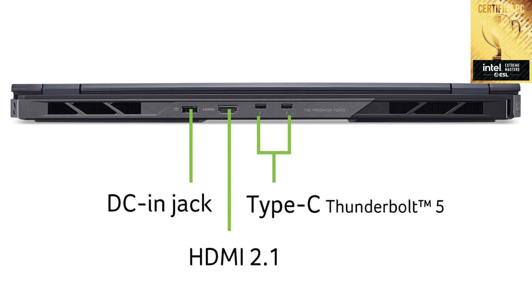 - Порты: Thunderbolt 5, RJ-45 5 Gbps, HDMI, USB и стимулирование расширяемости