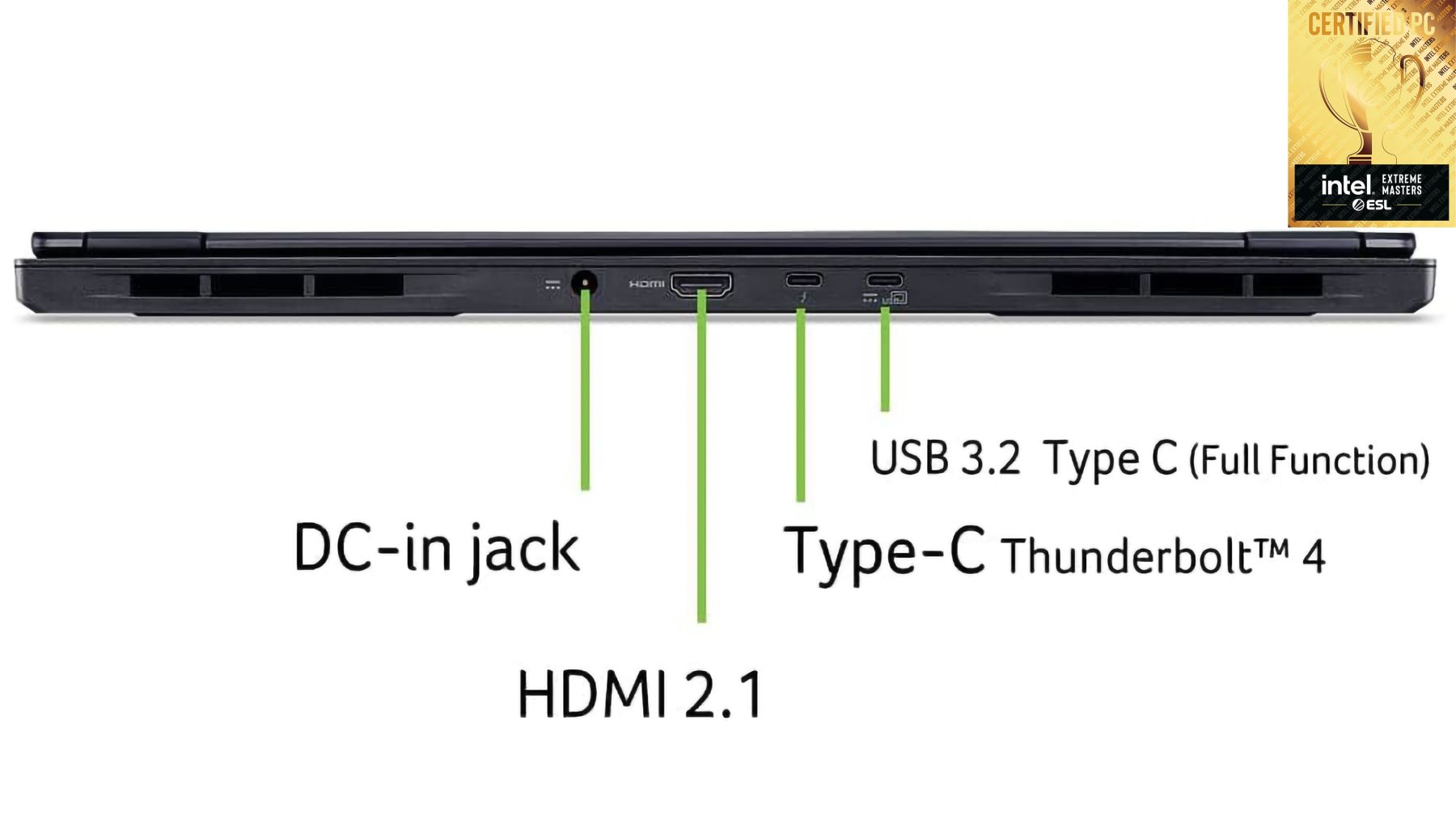 Connectors and input-output ports:1 HDMI 2.1, 2xUSB 3.2, 1xUSB3.1, RJ-45, 2xUSB Type-C™ port (USB 3.2 Gen 2 Thunderbolt 4)