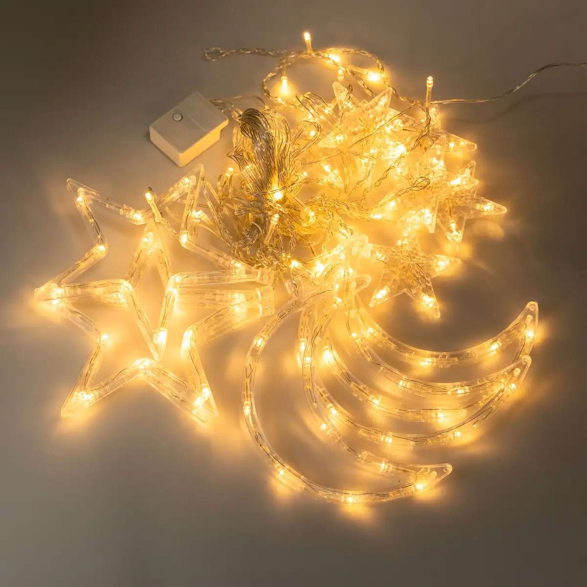 Електрична гірлянда Зірка штора 3 метри на вікно для фотозон жовта WYF11Y