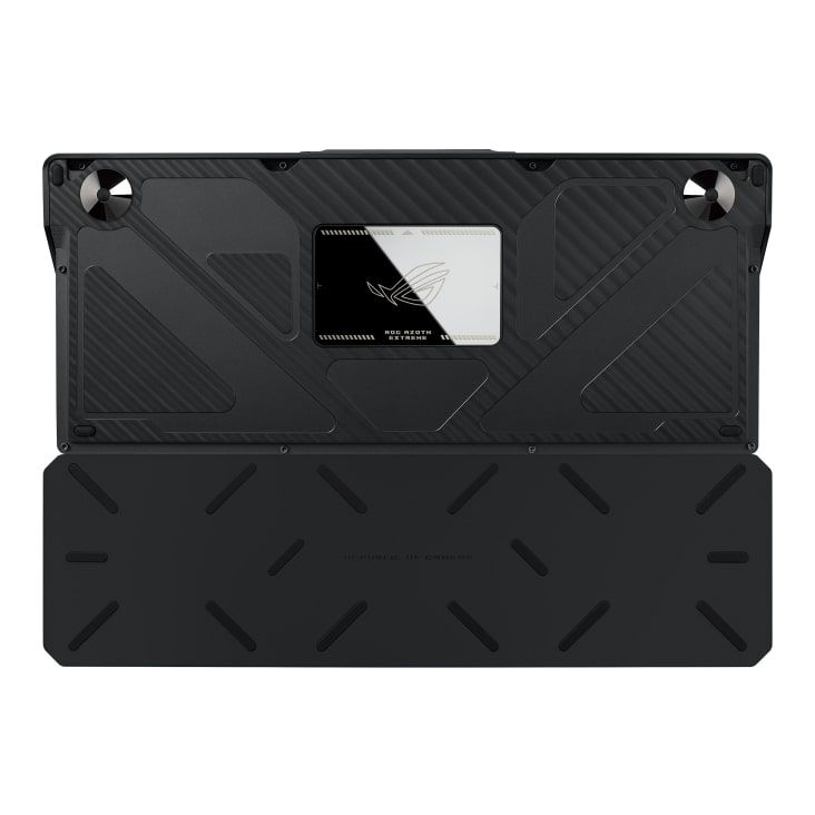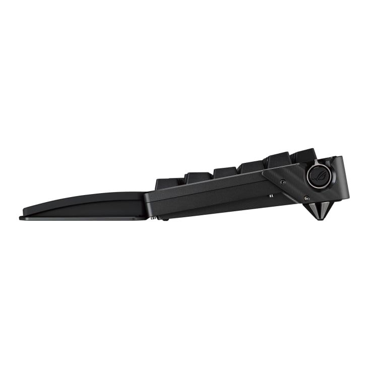 ROG Azoth Extreme постачається з двома парами ніжок різної висоти з магнітним кріпленням, що дає змогу встановлювати клавіатуру під одним із трьох кутів нахилу відповідно до вподобань користувача.