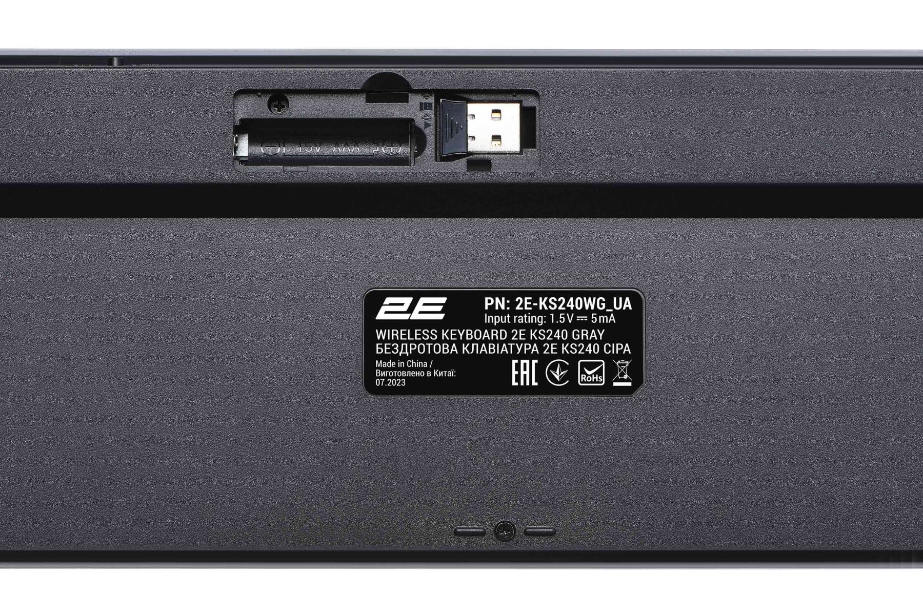 Клавіатура мембранна 2E KS240 110key, WL/BT, EN/UK, сіро-чорний