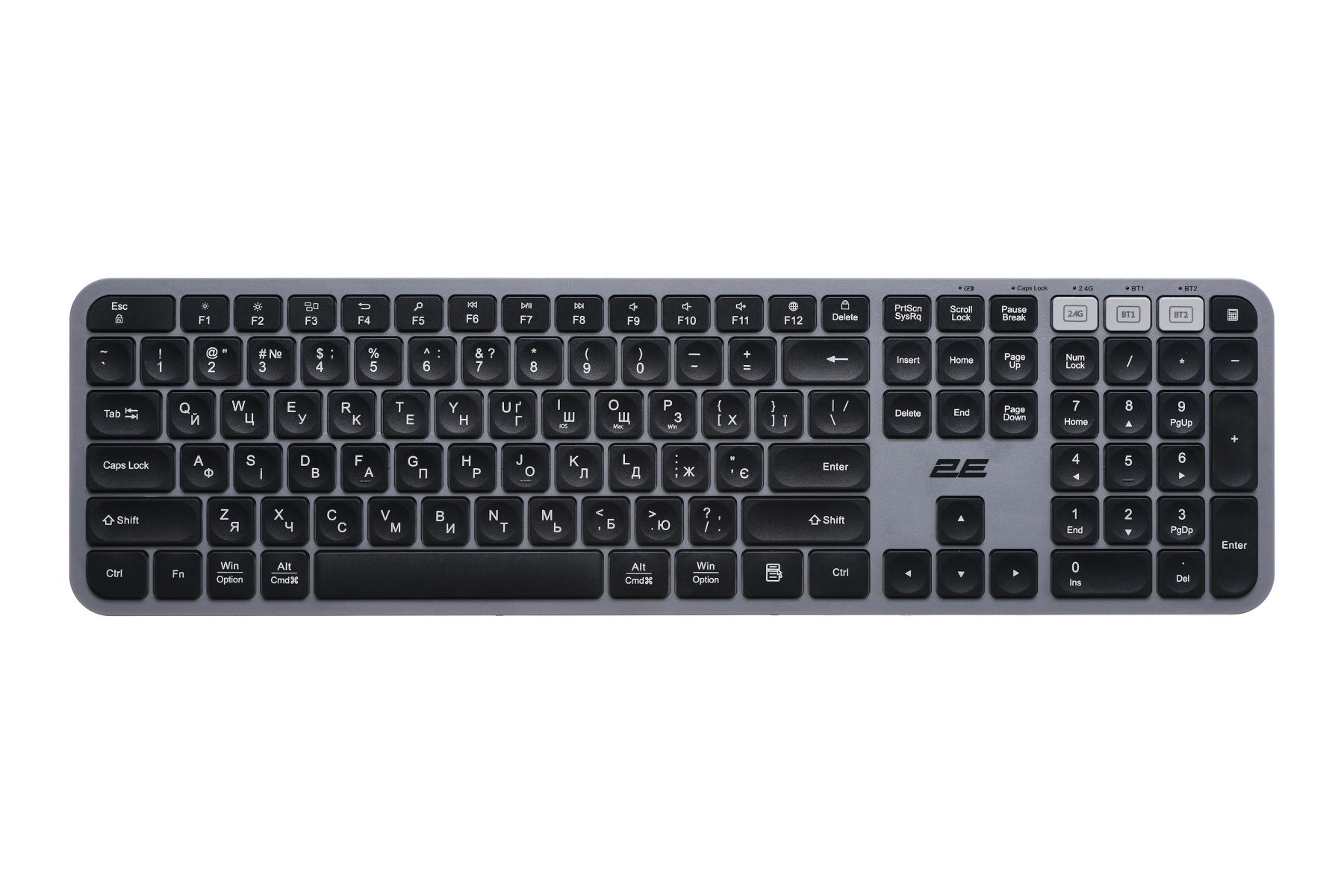 Комплект клавіатура та миша 2E MK440 WL/BT, EN/UK, сіро-чорний