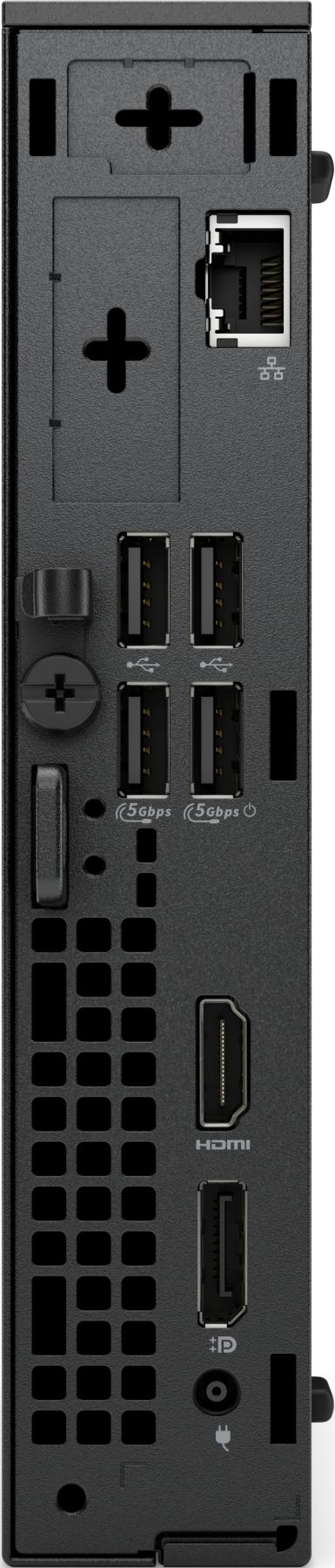 Пристрій оснащено всіма необхідними портами: 3 x USB 3.2 Gen1, 1 x USB 3.2 Gen2 Type-C, 2 x USB 2.0, HDMI, DisplayPort, RJ-45 та комбінованим аудіовиходом. Передбачено розширення за допомогою слотів M.2 для додаткового SSD та модуля Wi-Fi. Додаткові відеовиходи (VGA/DP/HDMI/USB-C) можуть бути встановлені опційно.